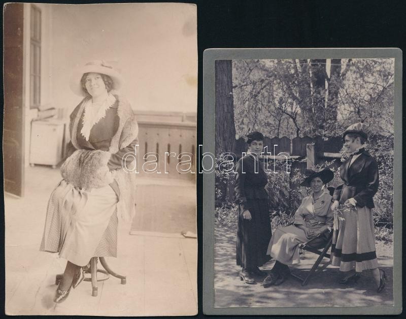 Leírás: cca 1912-1914 4 db fotó és fotólap, csoportképek, hölgy automobillal, 12x9 és 9x14 cm-es méretekben