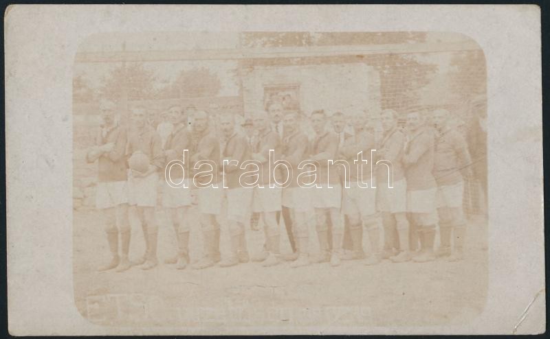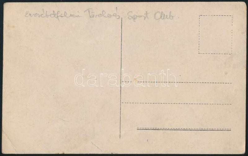 Leírás: cca 1920-1930 Pesterzsébet, az Erzsébetfalvai Törekvés Sport Club csapata, fotólap, hátulján feliratozva, 9×14 cm