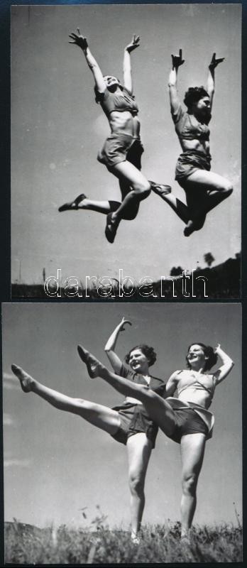 cca 1935 Mozgás- és mozdulatművészeti kompozíciók, Szentpál Olga iskolájának archívumából 3 db korabeli felvétel mai másolata, 13,5x12 cm és 11x17 cm között