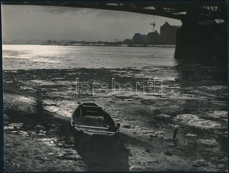 Leírás: cca 1941 Vadas Ernő (1899-1962): Híd alatt, pecséttel, aláírással jelzett vintage fotóművészeti alkotás, 17,5x23 cm