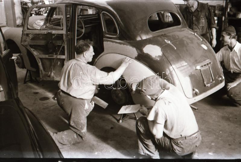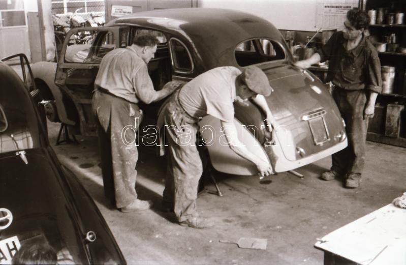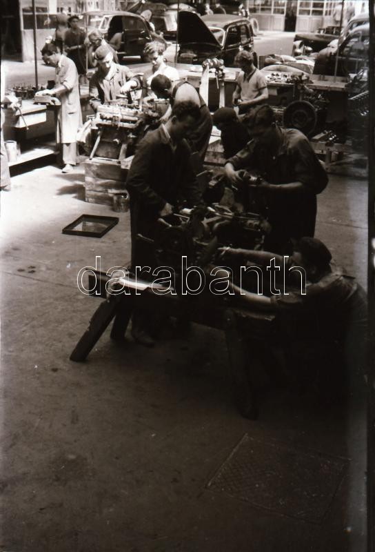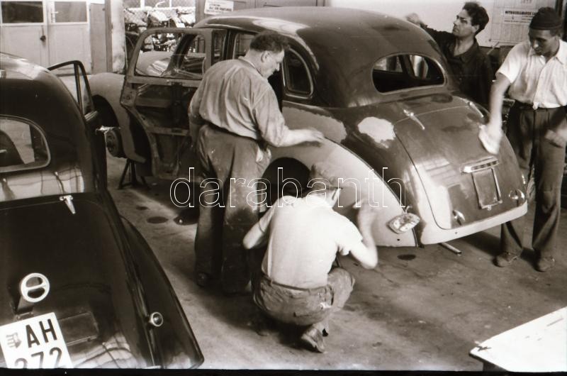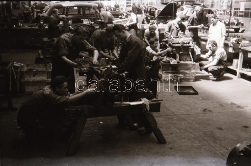 cca 1948 Az I. sz. Autójavító műhelyben készült fotóriport, 16 db szabadon felhasználható, vintage negatív Rózsa György (?-?) fotóriporter hagyatékából, 24x36 mm