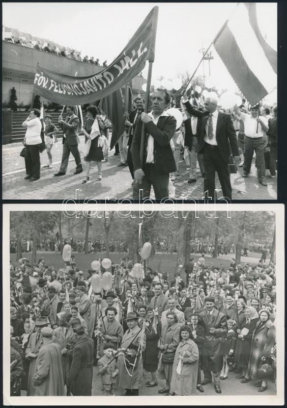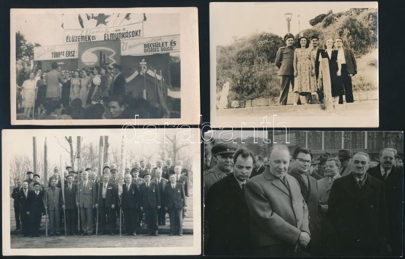 Leírás: cca 1959 14 db szocreál fotó, közte Kádár János, máj 1-i felvonulás, pártkongresszus, 9x12 és 23x18 cm közti méretben