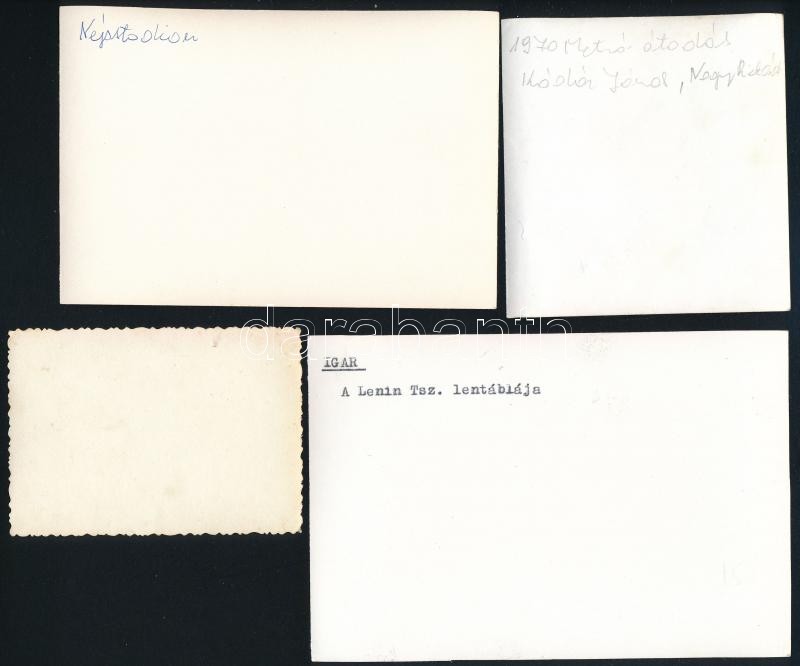 Leírás: cca 1960-1970 4 db különféle fotó: Kádár metróátadáson, Népstadion, stb., egy részük hátulján feliratozva, különböző méretben