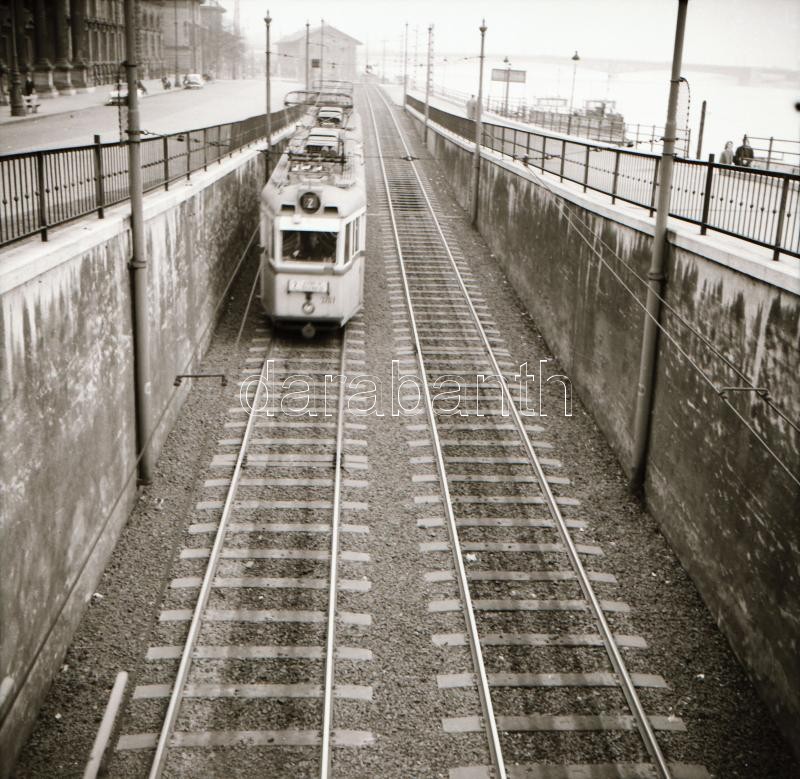 Leírás: cca 1968 Villamosok Budapesten, az Erzsébet hídon és a Szabadság híd alá vezető alagútnál, 2 db szabadon felhasználható, vintage negatív, 6x6 cm