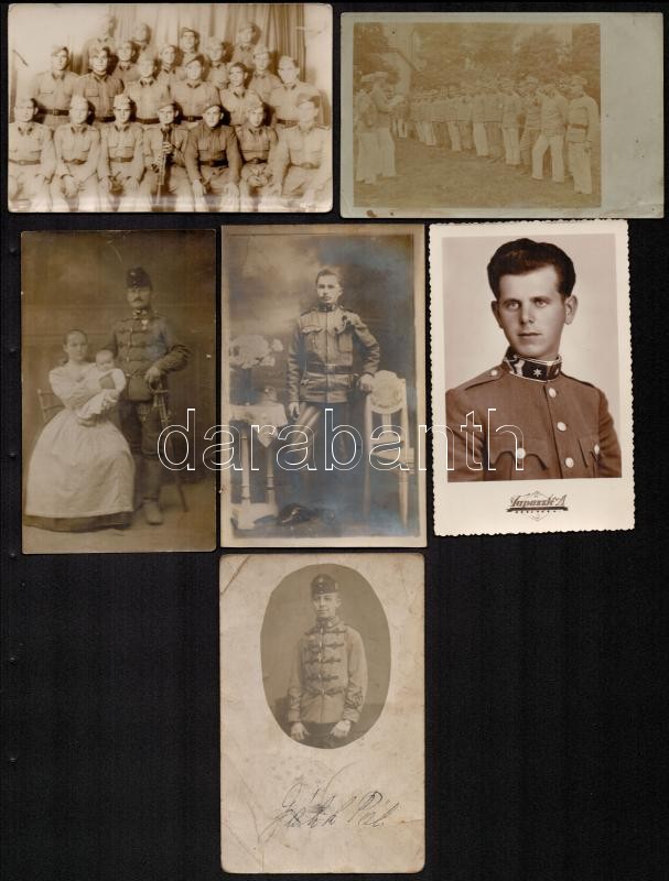 Leírás: cca 1914-1945 Vegyes katonai fotó tétel, műtermi fotók, csoportképek, stb., 11 db, 10x6 és 16x11 cm