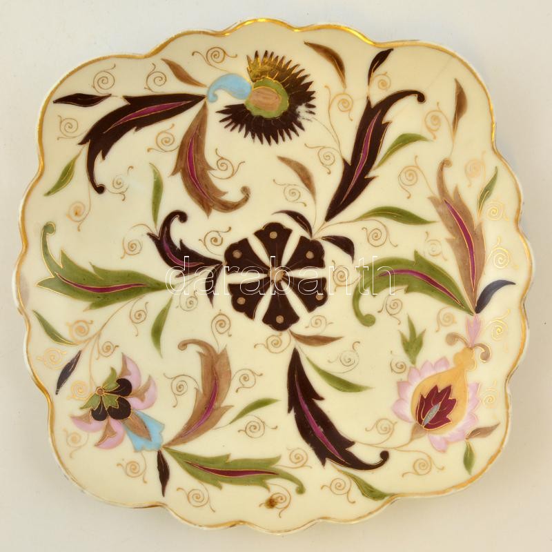 Leírás: Virágmintás porcelán tál, jelzés nélkül, hajszálrepedéssel, 19x19 cm