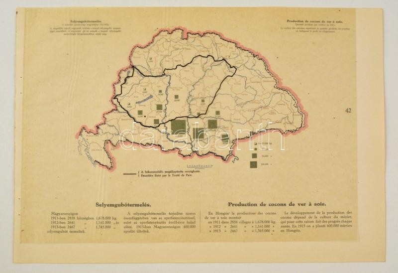 -ban, a "Magyarország gazdasági térképekben" kiadványból, magyar és francia magyarázó szöveggel, a trianoni határok feltüntetésével, 26,5×37,5 cm