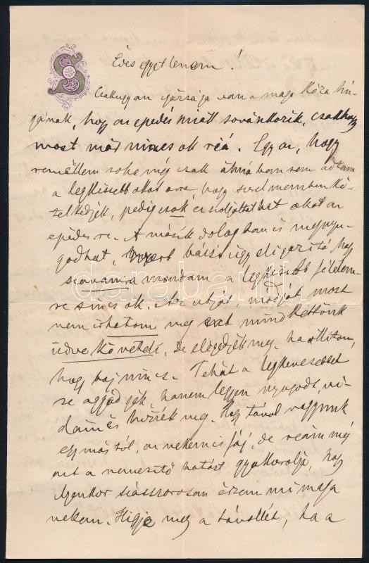 Leírás: 1870 Hegedűs Sándor (1847-1906) közgadász, miniszter, író saját kézzel írt szerelmes levele Jókay Jolánnak 4 beírt oldal