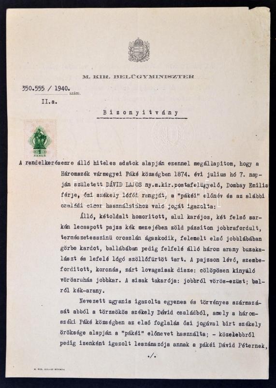 cca 1940 A pákéi Dávid-családra vonatkozó iratok: címerrajz, igazolás ... https://www.darabanth.com/hu/296-Gyorsarveres/296.0/Festmeny-mutargy-papirregiseg-egyeb/Tortenelmi-dokumentumok-keziratok-erdekessegek~17/cca-1940-A-pakei-David-csaladra-vonatkozo-iratok-cimerrajz-igazolas-a-cimeradomanyrol-i~II1581888