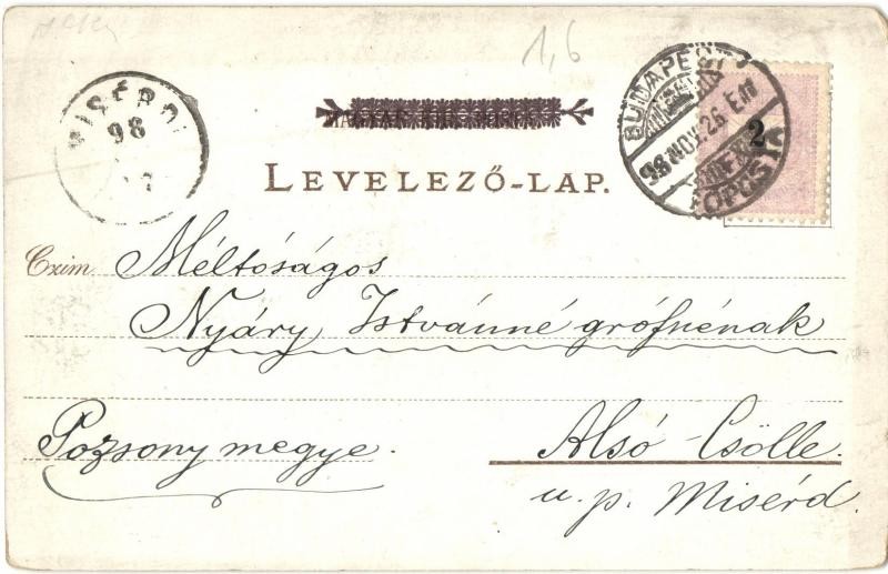 Leírás: 1898 Budapest VII. Keleti pályaudvar, floral Art Nouveau litho (EK)