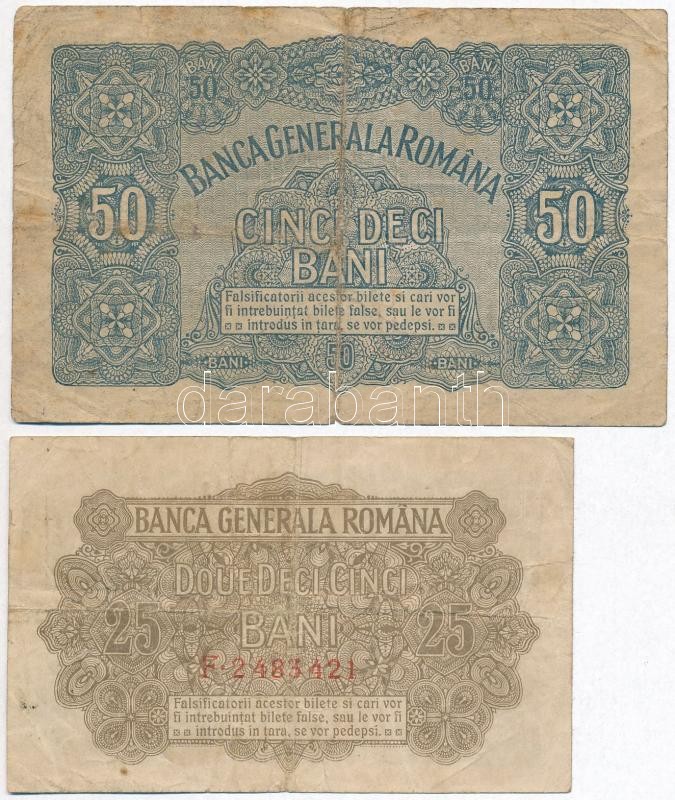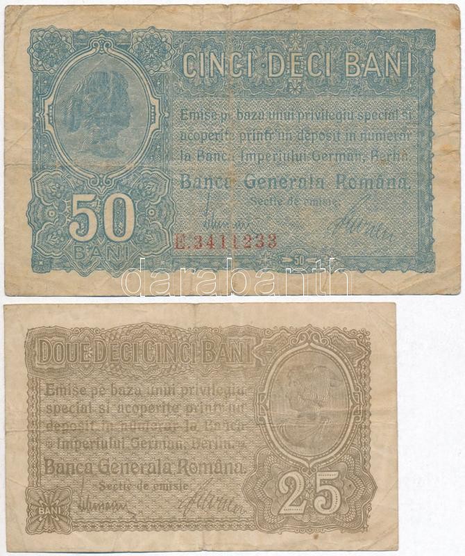 Románia / Német megszállás 1917. 25b + 50b T:III,III- Romania / German... https://www.darabanth.com/hu/296-Gyorsarveres/296.0/Numizmatika/Kulfoldi-bankjegyek~300023/Romania-Nemet-megszallas-1917-25b-plus-50b-TIII-III-Romania-German-occupation-1917-25-Bani-~II1575016