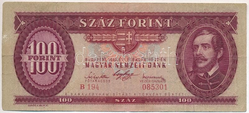 Leírás: 1947. 100Ft T:III szélén szakadás