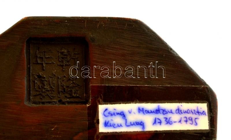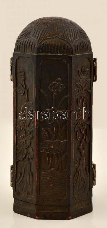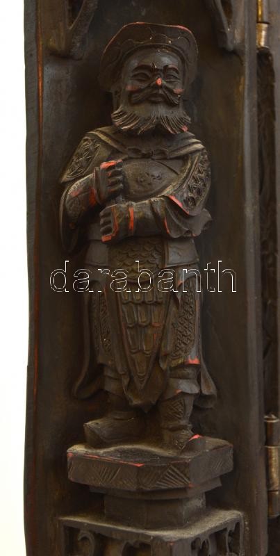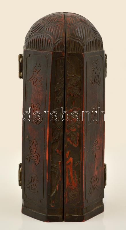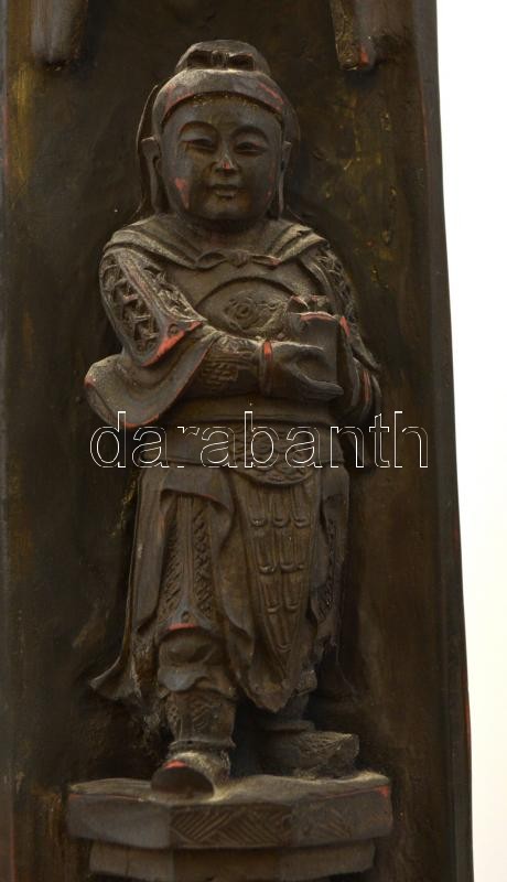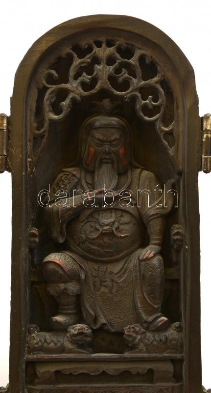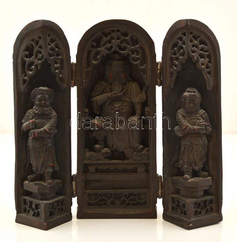 Leírás: Jelzett kínai "házi oltár" triptichon, festett műgyanta?, m: 22 cm