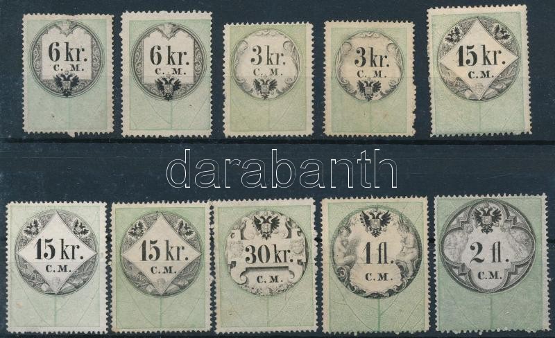Leírás: 1854 10 db használatlan C.M. okmánybélyeg