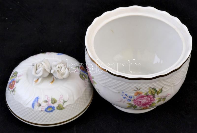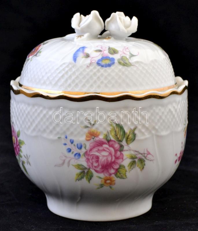Leírás: Hollóházi virágmintás porcelán bonbonier, jelzett, apró lepattanással, m: 13 cm