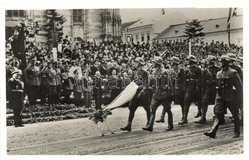Leírás: 1940 Nagyvárad, Oradea; bevonulás, országzászló, Horthy Miklós / entry of the Hungarian troops, flag (EK)