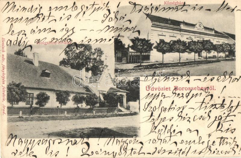 Leírás: Borossebes, Sebis; Szolgabíró hivatal, Községháza, Honisch udv. fényképész felvétele / court, town hall