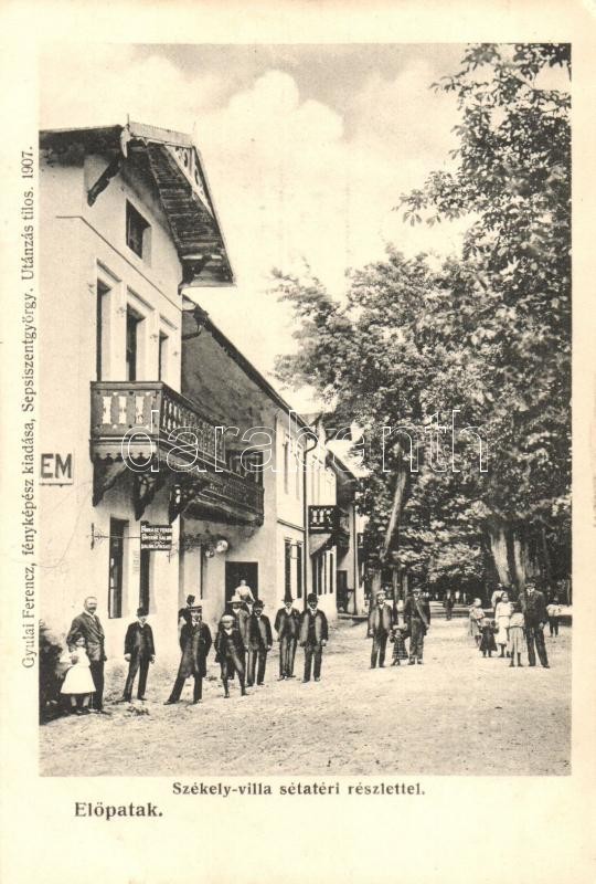 Leírás: Előpatak, Valcele; Székely villa, sétatér, fodrászterem, Gyulai Ferenc kiadása / villa, promenade, hairdresser (EK)