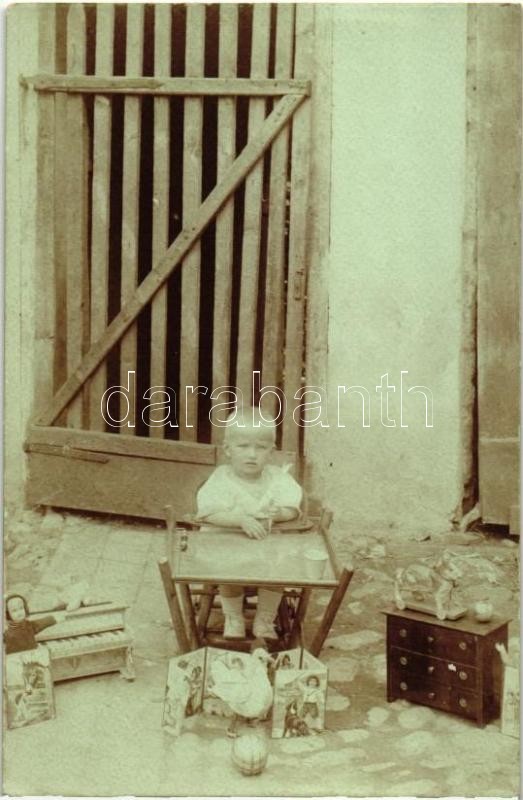 Leírás: 1915 Besztercebánya, Banska Bystrica; Kisgyerek játékokkal / child with toys, photo