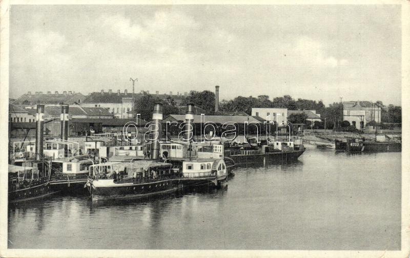 Komárom, Komárno; Dunarészlet a kikötővel, gőzhajók, uszályok / Donaua... https://www.darabanth.com/hu/297-Gyorsarveres/297.0/Kepeslapok/Felvidek~9/Komarom-Komarno-Dunareszlet-a-kikotovel-gozhajok-uszalyok-Donauansicht-mit-Hafen-riv~II1588868