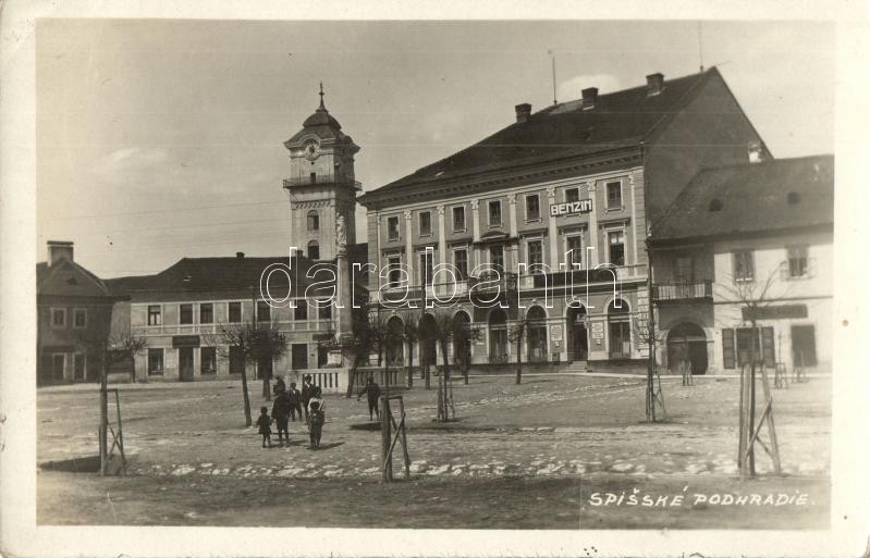 Szepesváralja, Spisské Podhradie; Fő tér, benzin, R. Vozári, J. Friedl... https://www.darabanth.com/hu/297-Gyorsarveres/297.0/Kepeslapok/Felvidek~9/Szepesvaralja-Spisske-Podhradie-Fo-ter-benzin-R-Vozari-J-Friedlander-uzletei-main-squ~II1590402