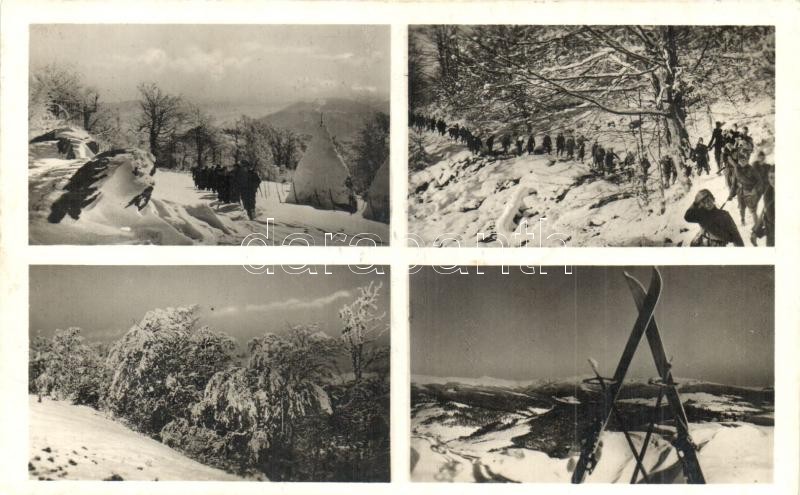 Leírás: Fenyvesvölgy, Sztavne; 11. Határvadász zászlóalj székhelye, Cheremka csúcs, sílécek / Hungarian border guard station, mountain peak, ski