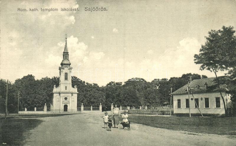 Sajóörös, Római katolikus templom és iskola, kutya, Hangya fogy. szöve... https://www.darabanth.com/hu/297-Gyorsarveres/297.0/Kepeslapok/Magyarorszag~7/Sajooros-Romai-katolikus-templom-es-iskola-kutya-Hangya-fogy-szovetkezet-kiadasa~II1586822