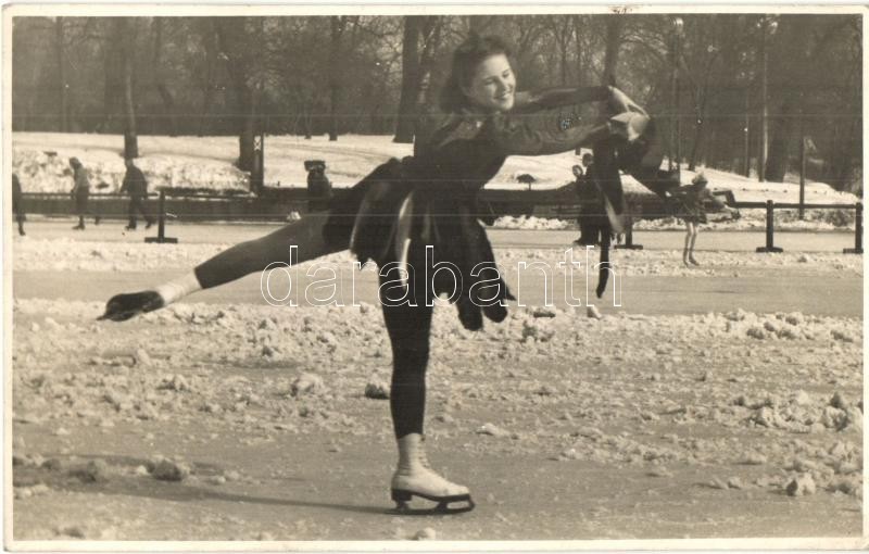Leírás: Korcsolyázó hölgy a budapesti Városligeti korcsolyapályán / Ice skating lady in Budapest, Pobuda Alfréd photo