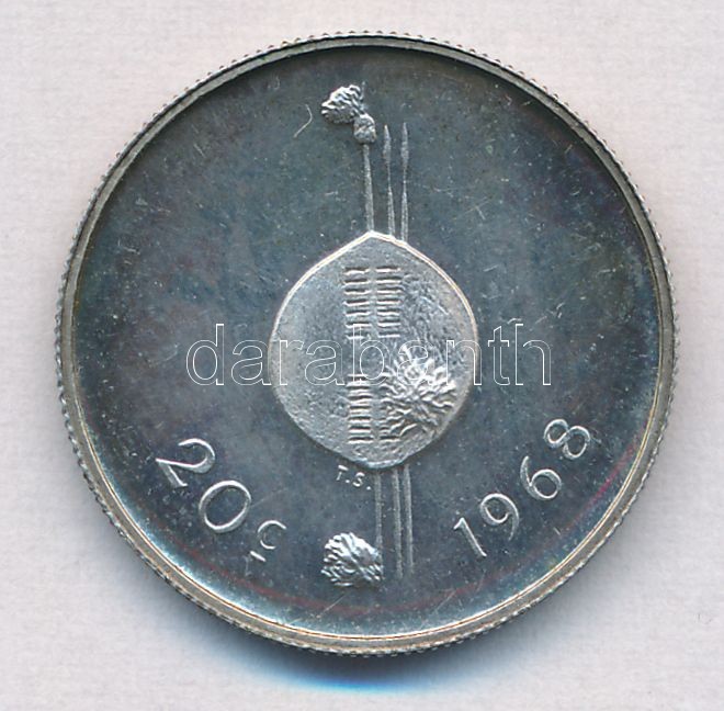 Swaziland 1968. 20 Cents Ag "Sobhuza II / Independence" C:XF(UNC) patina