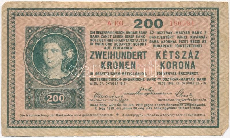 Leírás: 1918. 200K "A 1011" sima hátlappal T:III-