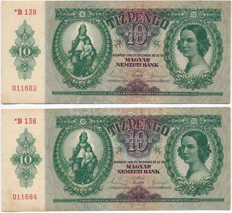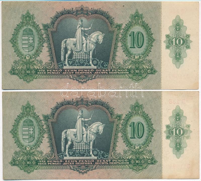 1936. 10P (2x) egyugrásos sorszámkövetők, hajtatlanok T:II https://www.darabanth.com/hu/297-Gyorsarveres/297.0/Numizmatika/Magyar-bankjegyek~500007/1936-10P-2x-egyugrasos-sorszamkovetok-hajtatlanok-TII~II1590849