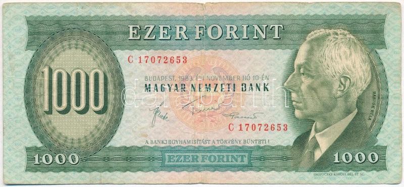 Leírás: 1983. november 10. 1000Ft "C" T:III kis szakadás