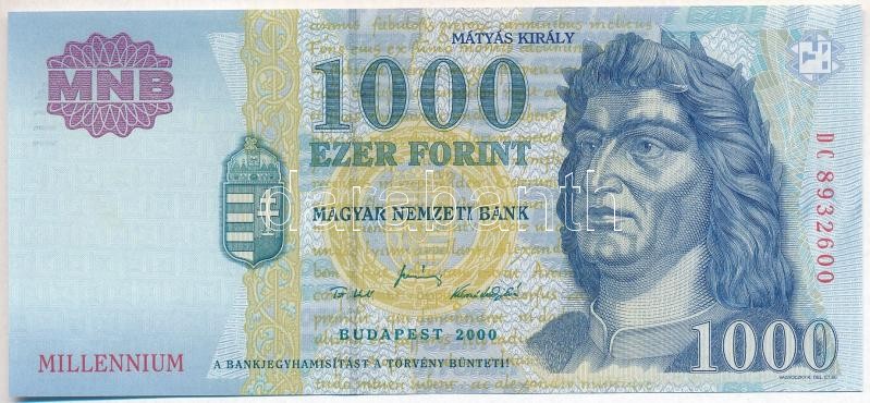 2000. 1000Ft "DC" "Millennium" T:I https://www.darabanth.com/hu/297-Gyorsarveres/297.0/Numizmatika/Magyar-bankjegyek~500007/2000-1000Ft-DC-Millennium-TI~II1568194