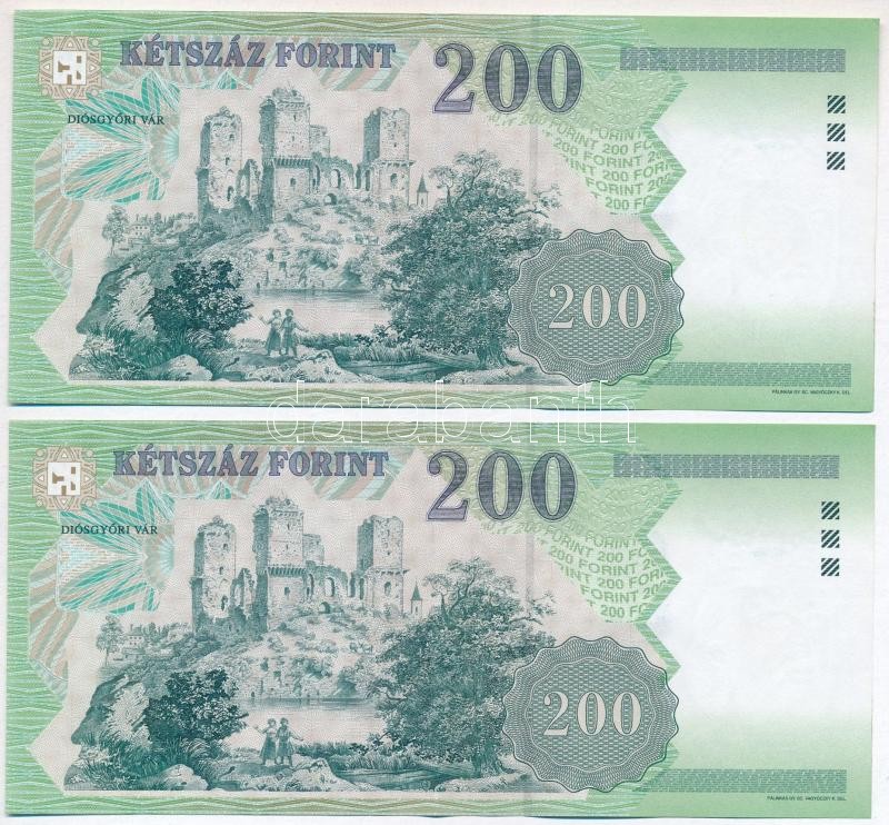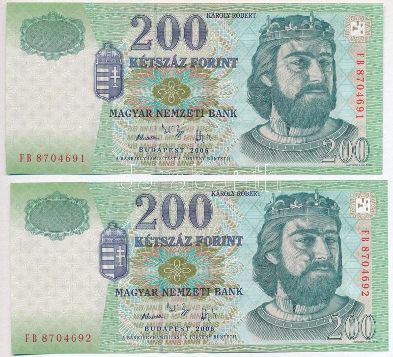 2006. 200Ft (2x) sorszámkövetők, "FB 8704691 - FB 8704692" T:II https://www.darabanth.com/hu/297-Gyorsarveres/297.0/Numizmatika/Magyar-bankjegyek~500007/2006-200Ft-2x-sorszamkovetok-FB-8704691--FB-8704692-TII~II1582252