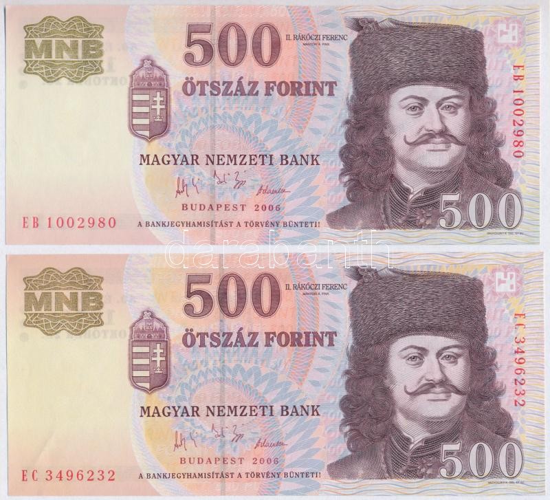 2006. 500Ft "EB" "50. évforduló 1956. október 23." + 500Ft "EC" "50. é... https://www.darabanth.com/hu/297-Gyorsarveres/297.0/Numizmatika/Magyar-bankjegyek~500007/2006-500Ft-EB-50-evfordulo-1956-oktober-23-plus-500Ft-EC-50-evfordulo-1956-oktober-2~II1590854