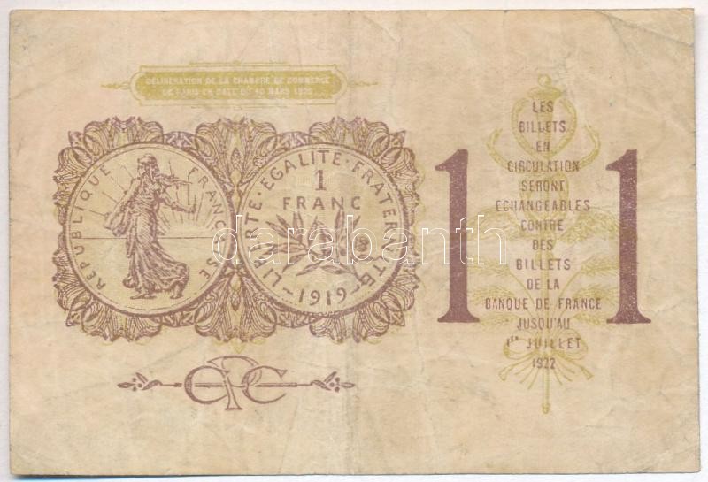 Leírás: Franciaország / Párizsi Kereskedelmi Kamara 1920. 1Fr szükségpénz T:III,III-