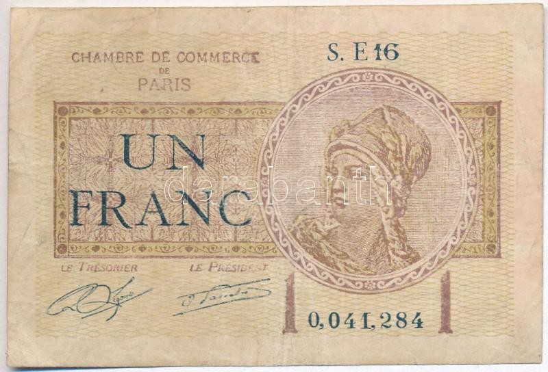 Franciaország / Párizsi Kereskedelmi Kamara 1920. 1Fr szükségpénz T:II... https://www.darabanth.com/hu/297-Gyorsarveres/297.0/Numizmatika/Magyar-es-kulfoldi-papir-es-fem-szuksegpenzek~500006/Franciaorszag-Parizsi-Kereskedelmi-Kamara-1920-1Fr-szuksegpenz-TIII-III---France-Chambre-~II1584582