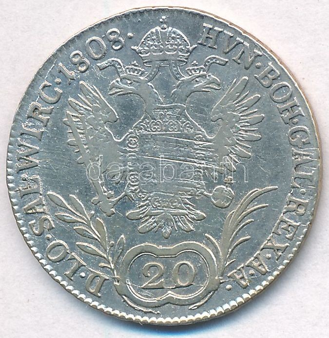 Huszár: 1970., Unger ... https://www.darabanth.com/hu/297-Gyorsarveres/297.0/Numizmatika/Magyar-es-magyar-verdejelu-fem-es-ezustpenzek~500008/1808B-20kr-Ag-I-Ferenc-6-6g-T2-2-juszt---Huszar-1970-Unger-III-1377a~II1590112