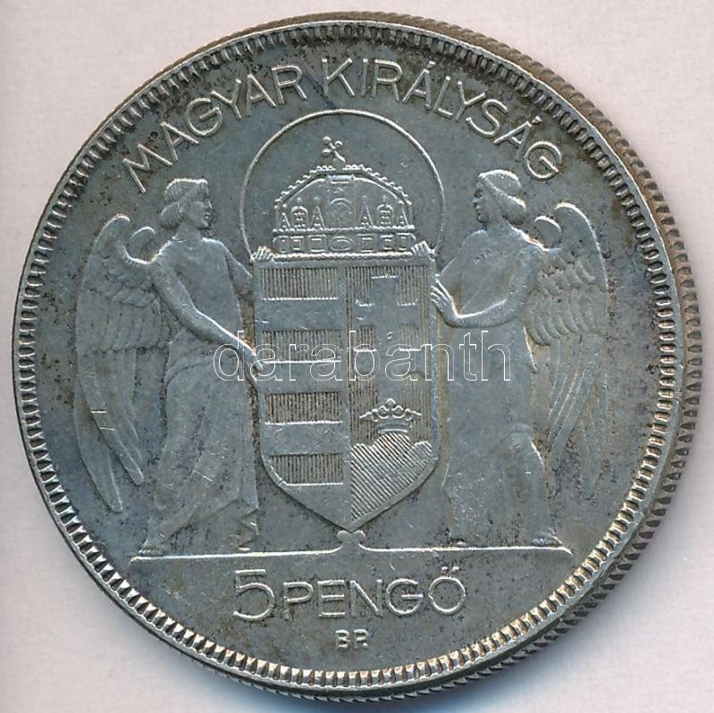 Leírás: 1930. 5P Ag "Horthy jobbra" T:2,2-