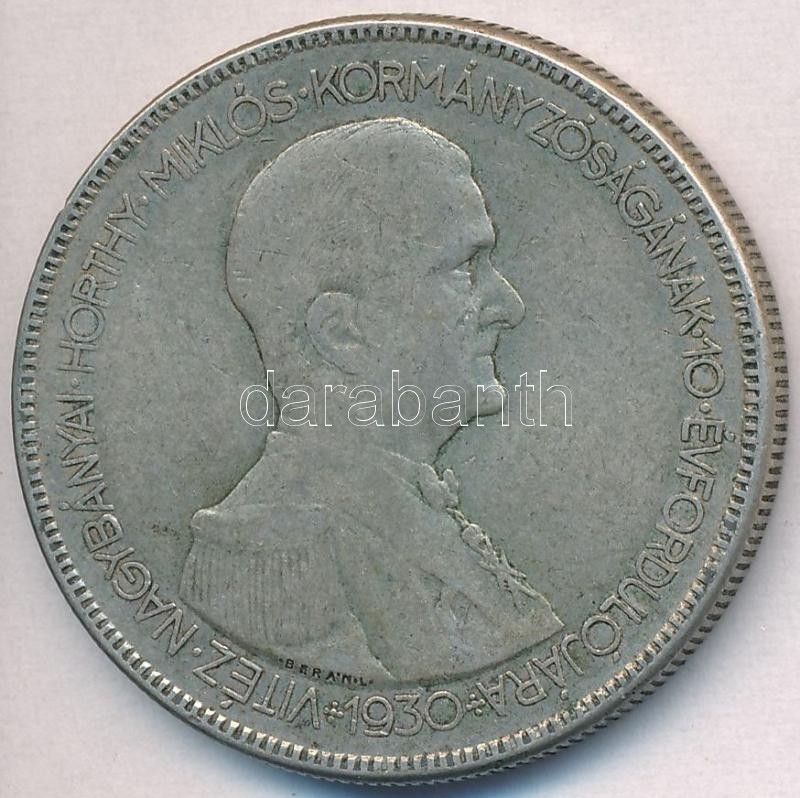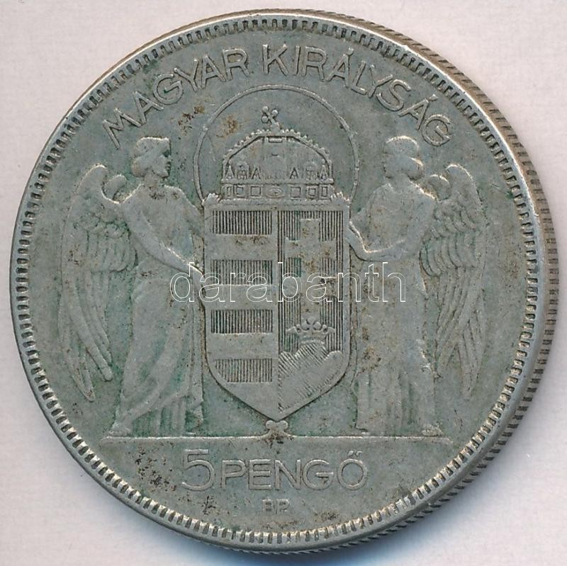 Leírás: 1930. 5P Ag "Horthy jobbra" T3 patina
