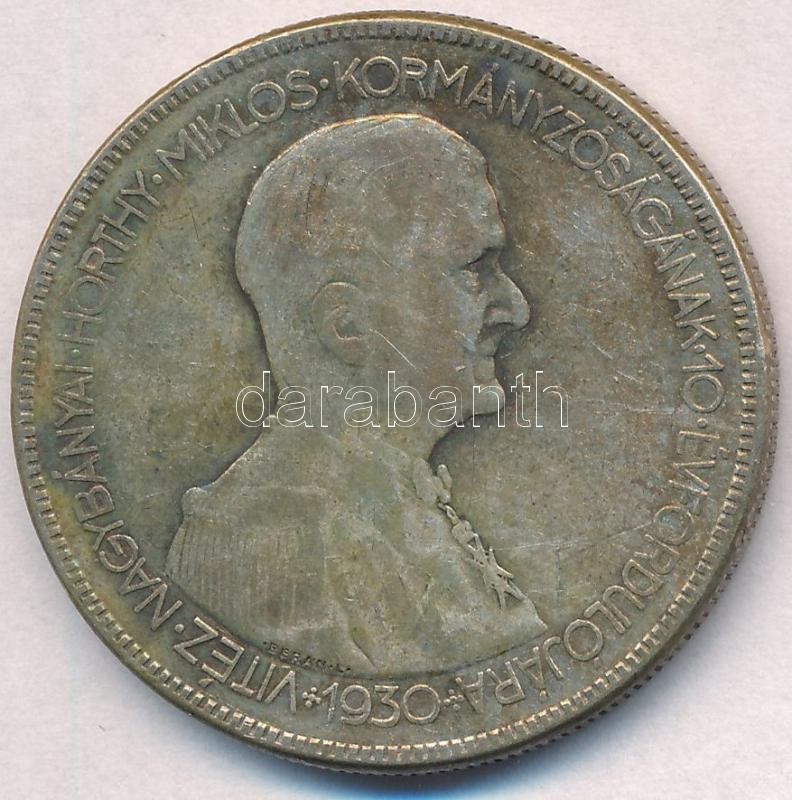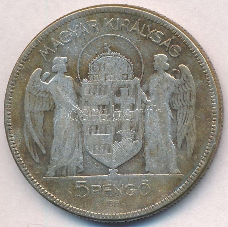 Leírás: 1930. 5P Ag "Horthy jobbra" T:3 patina