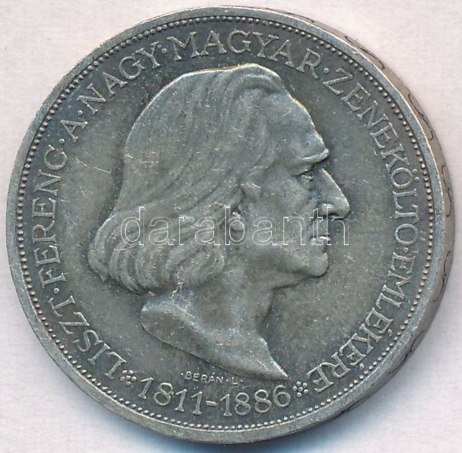Adamo P7.3 https://www.darabanth.com/hu/297-Gyorsarveres/297.0/Numizmatika/Magyar-es-magyar-verdejelu-fem-es-ezustpenzek~500008/1936-2P-Ag-Liszt-Ferenc-T1-2-kis-patina---Adamo-P73~II1590933