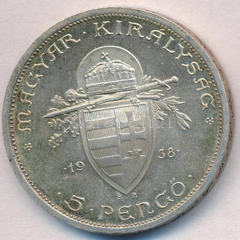 Leírás: 1938. 5P Ag "Szent István" T:2 patina