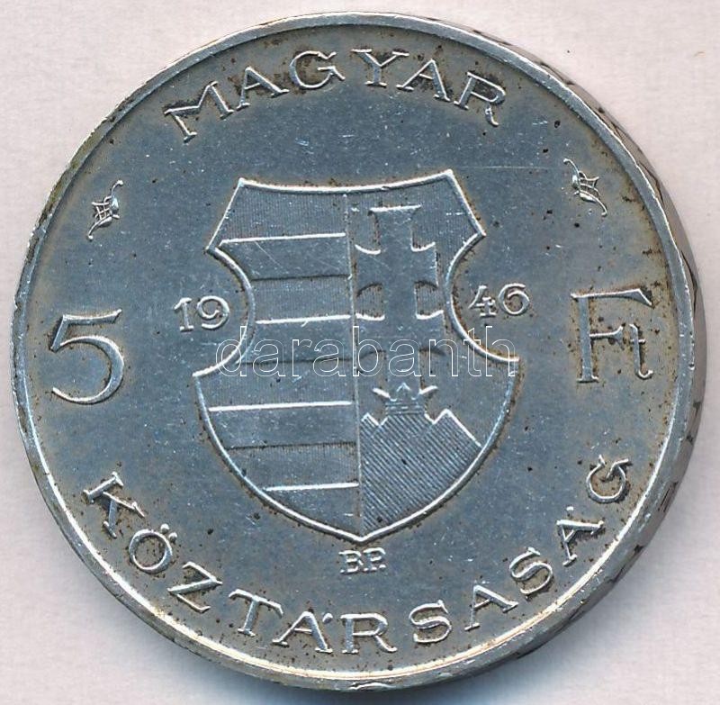 Leírás: 1946. 5Ft Ag "vastag Kossuth" T:1-,2 kis ph., kis patina