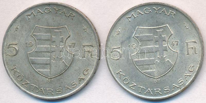 Leírás: 1947. 5Ft Ag "Kossuth" (2x) T:2,2-