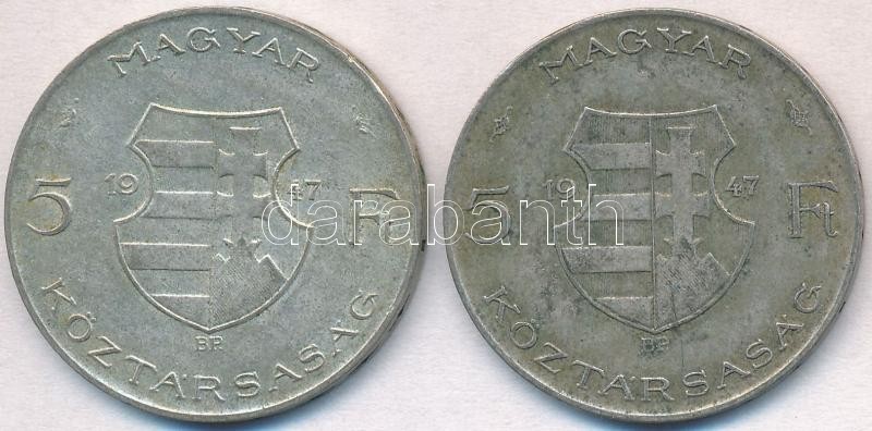 Leírás: 1947. 5Ft Ag "Kossuth" (2x) T:2,2- patina