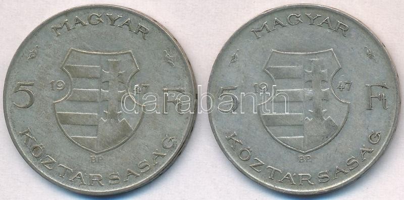 Leírás: 1947. 5Ft Ag "Kossuth" (2x) T:2-,3