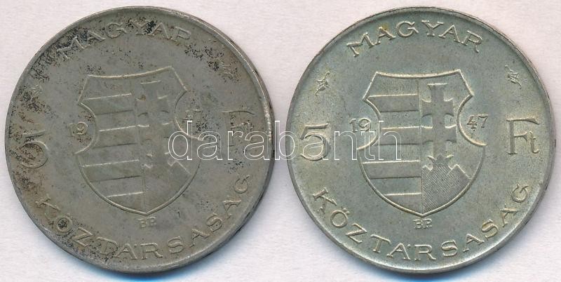 Leírás: 1947. 5Ft Ag "Kossuth" (2x) T:2-,3 patina