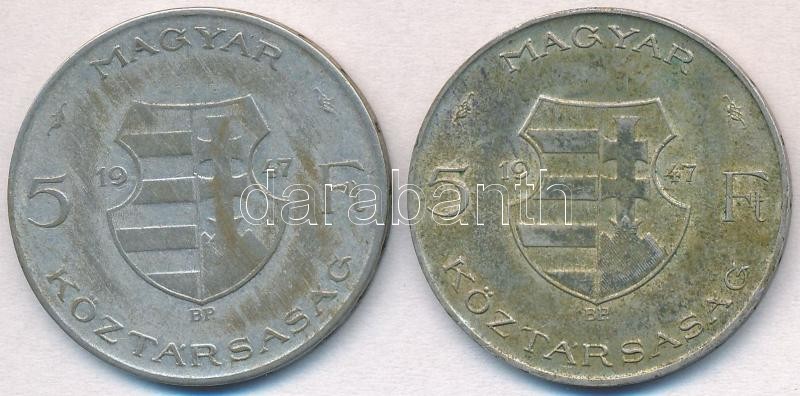 Leírás: 1947. 5Ft Ag "Kossuth" (2x) T:2-,3 patina