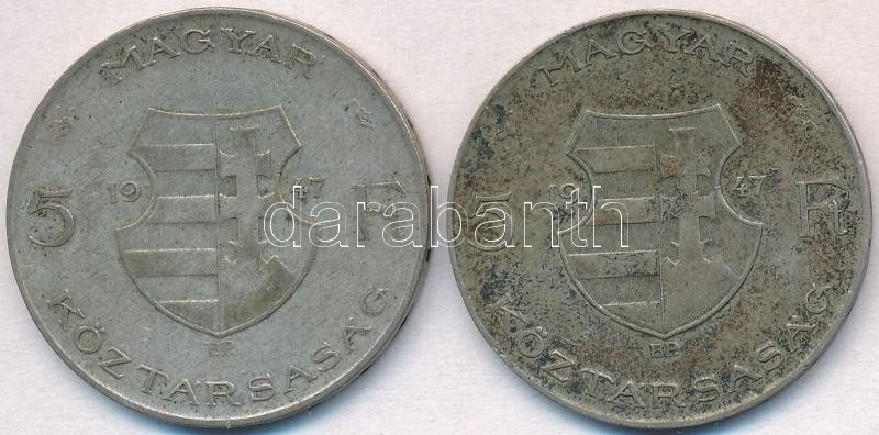 Leírás: 1947. 5Ft Ag "Kossuth" (2x) T:2-,3 patina